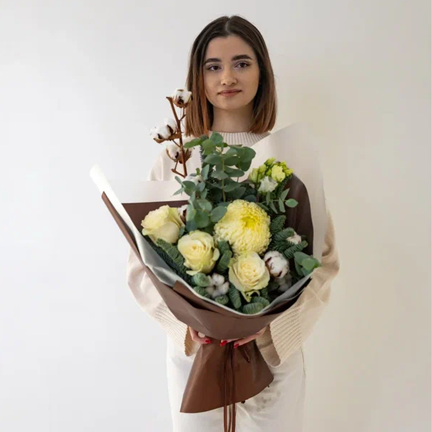 Каждый цветок уникален. Мы не можем гарантировать 100% совпадения Вашего букета и букета на фото. Это зависит от сезонности, наличия и природной индивидуальности каждого цветка. Но мы обязательно сохраним общую композицию и настроение букета!