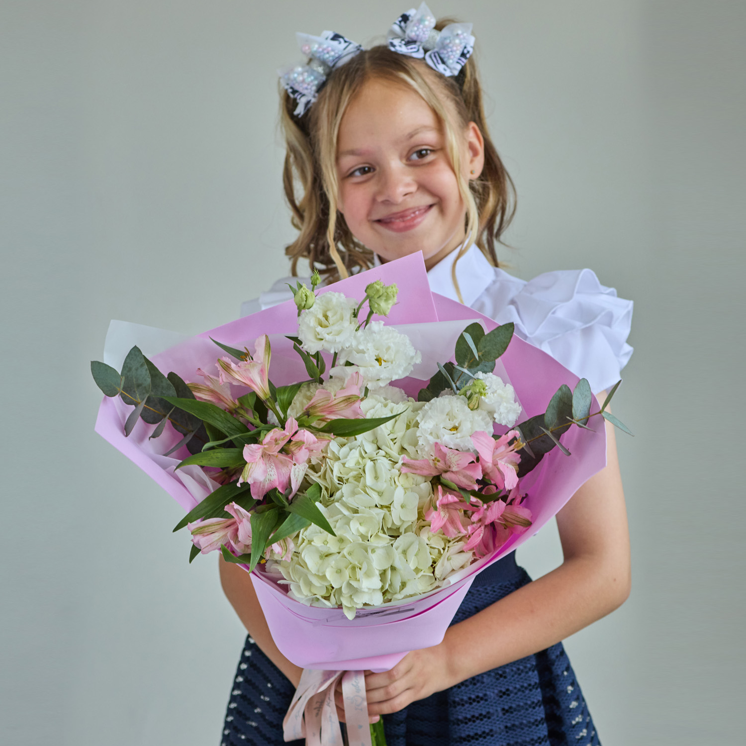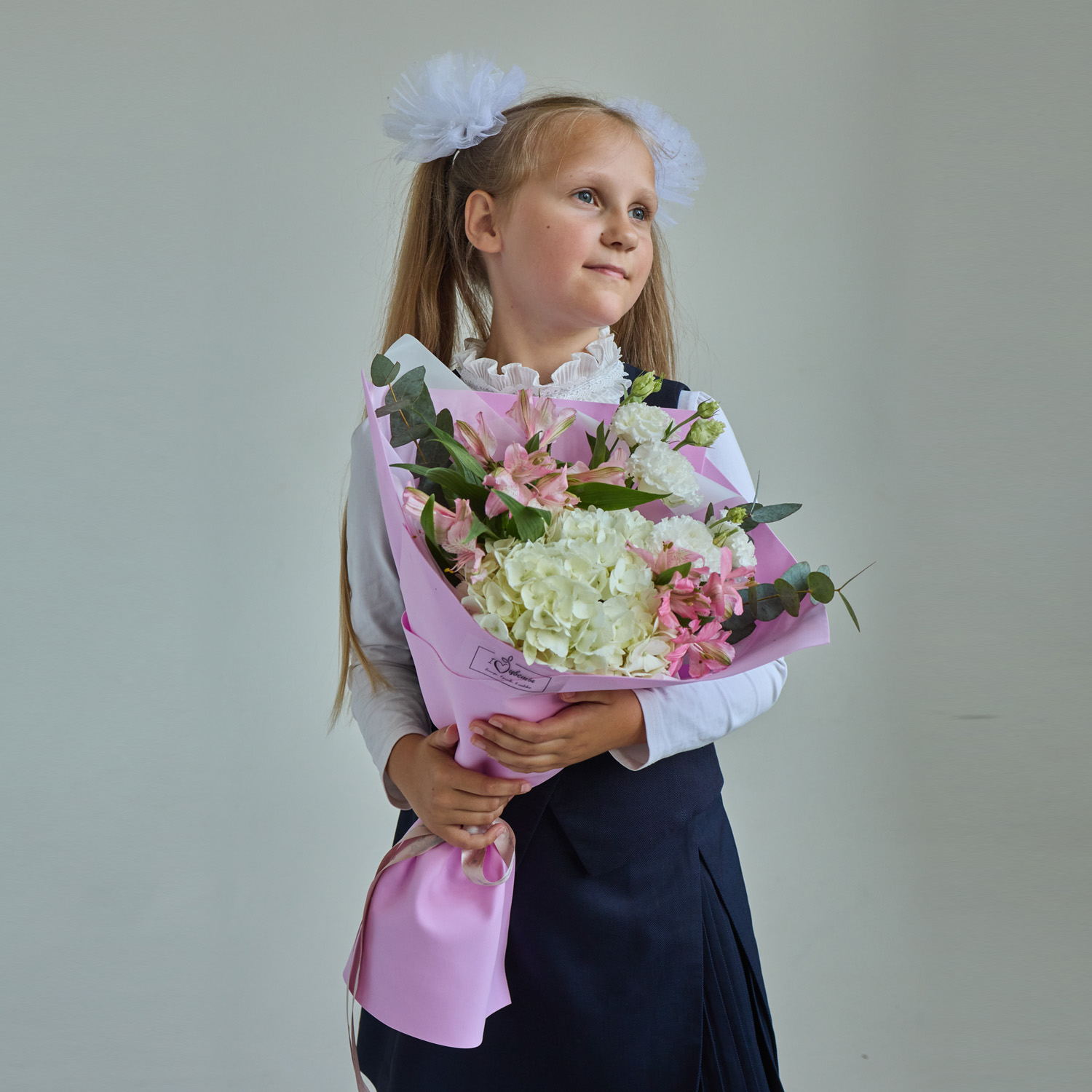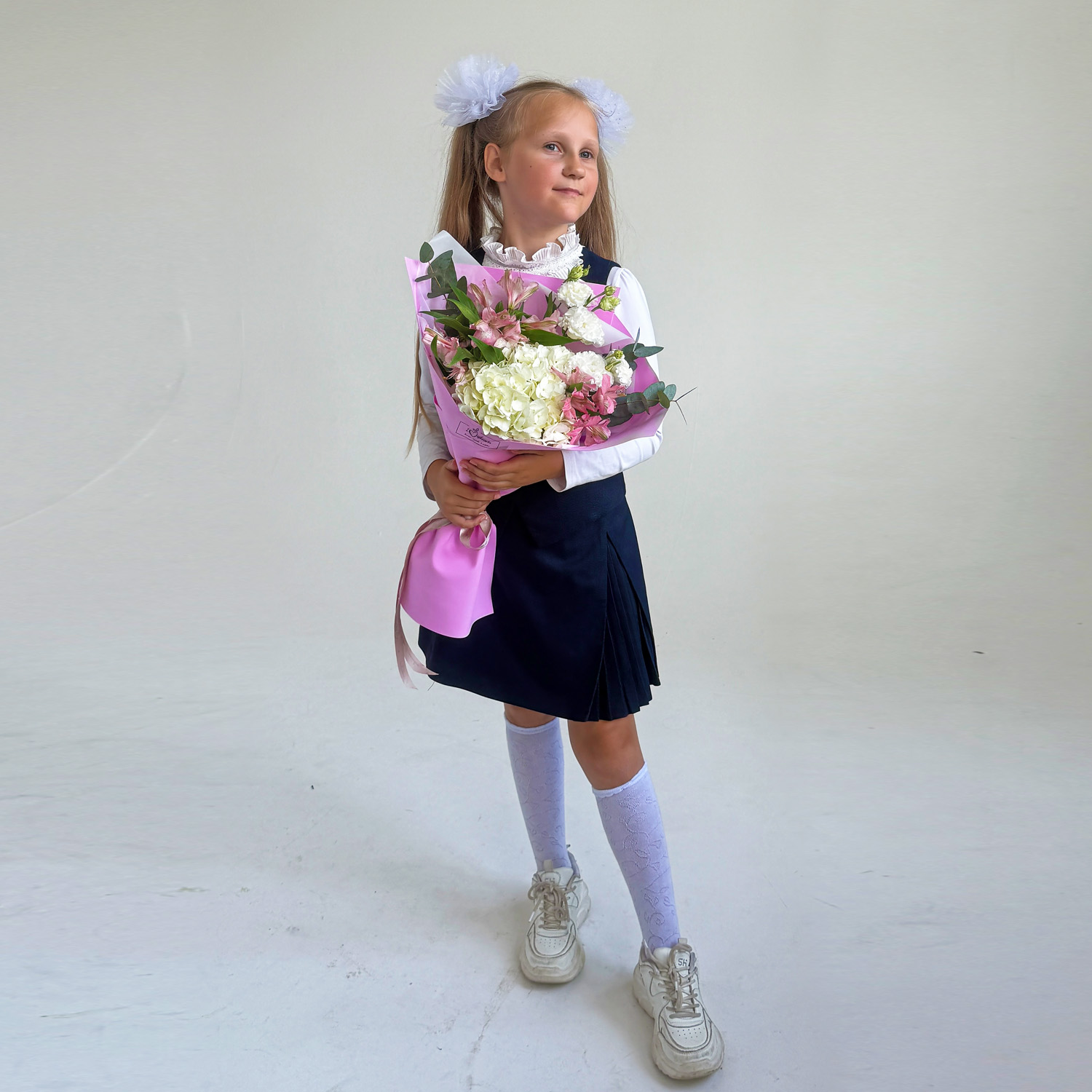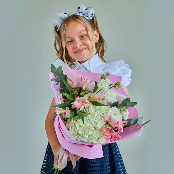 Этот букет на 1 сентября создаст праздничное настроение и станет стильным акцентом на фотографиях. Он подойдёт не только для школьницы, но и как комплимент на день учителя, день воспитателя, или в качестве благодарности и знака внимания. Универсальность и изящество делают его уместным подарком в любой, не только школьный праздник.
