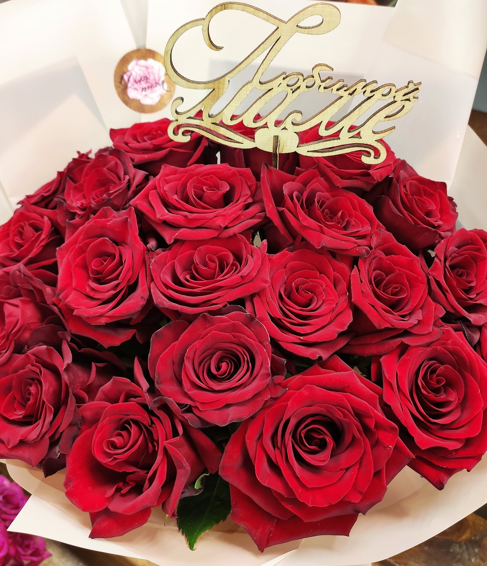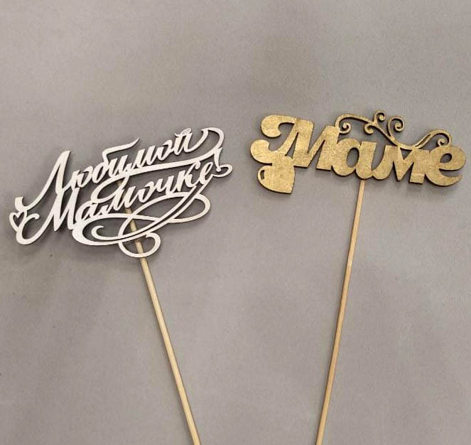 Деревянный топпер-вставка в букет МАМЕ